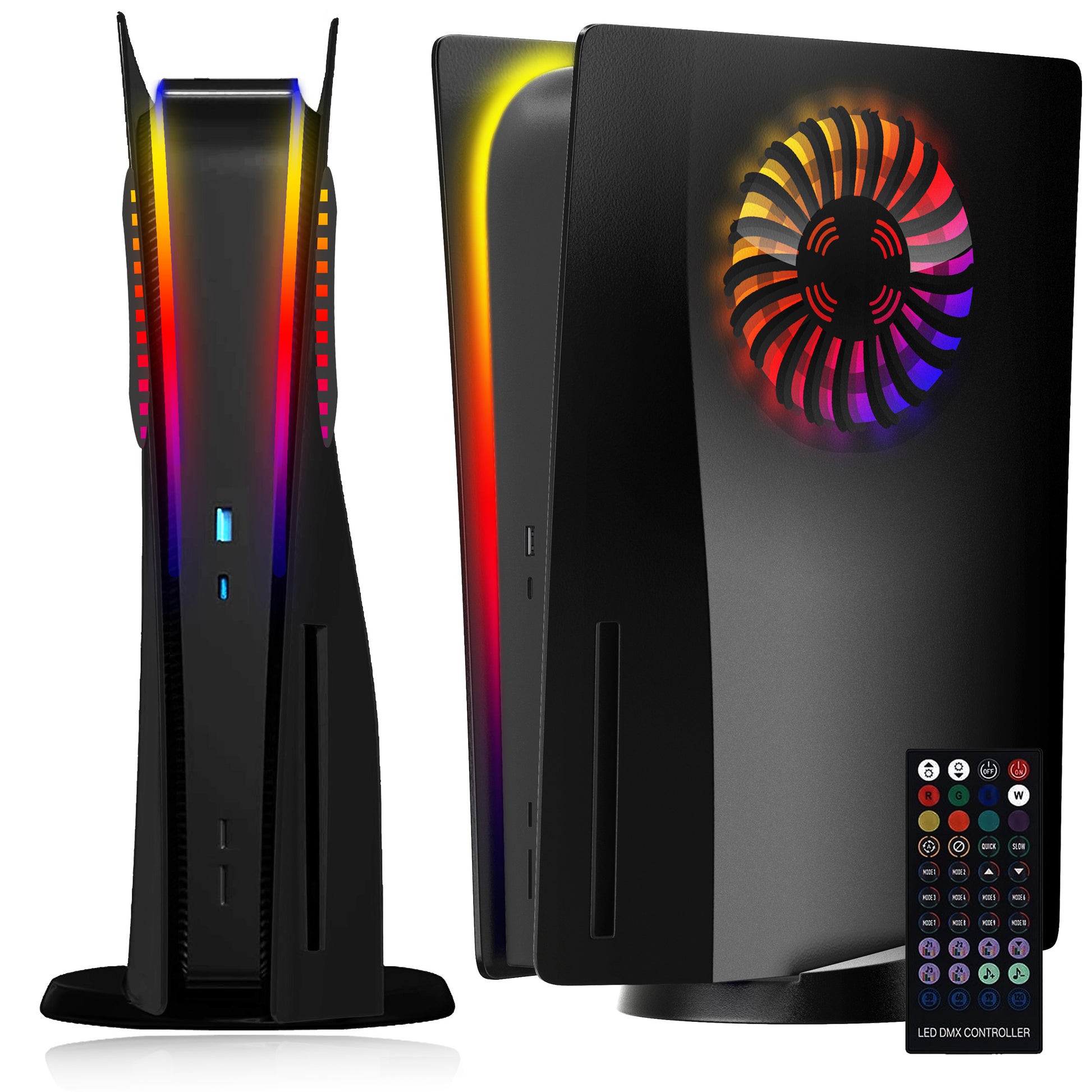 - 【ALL-IN-ONE】- Save on purchasing LED lights separately with this purchase. Included are 1 x new faceplates with vents for your disc edition ps5, 1x LED set (both sides) with stickers for installation, 1 x Remote controle with battery to control the LED effects