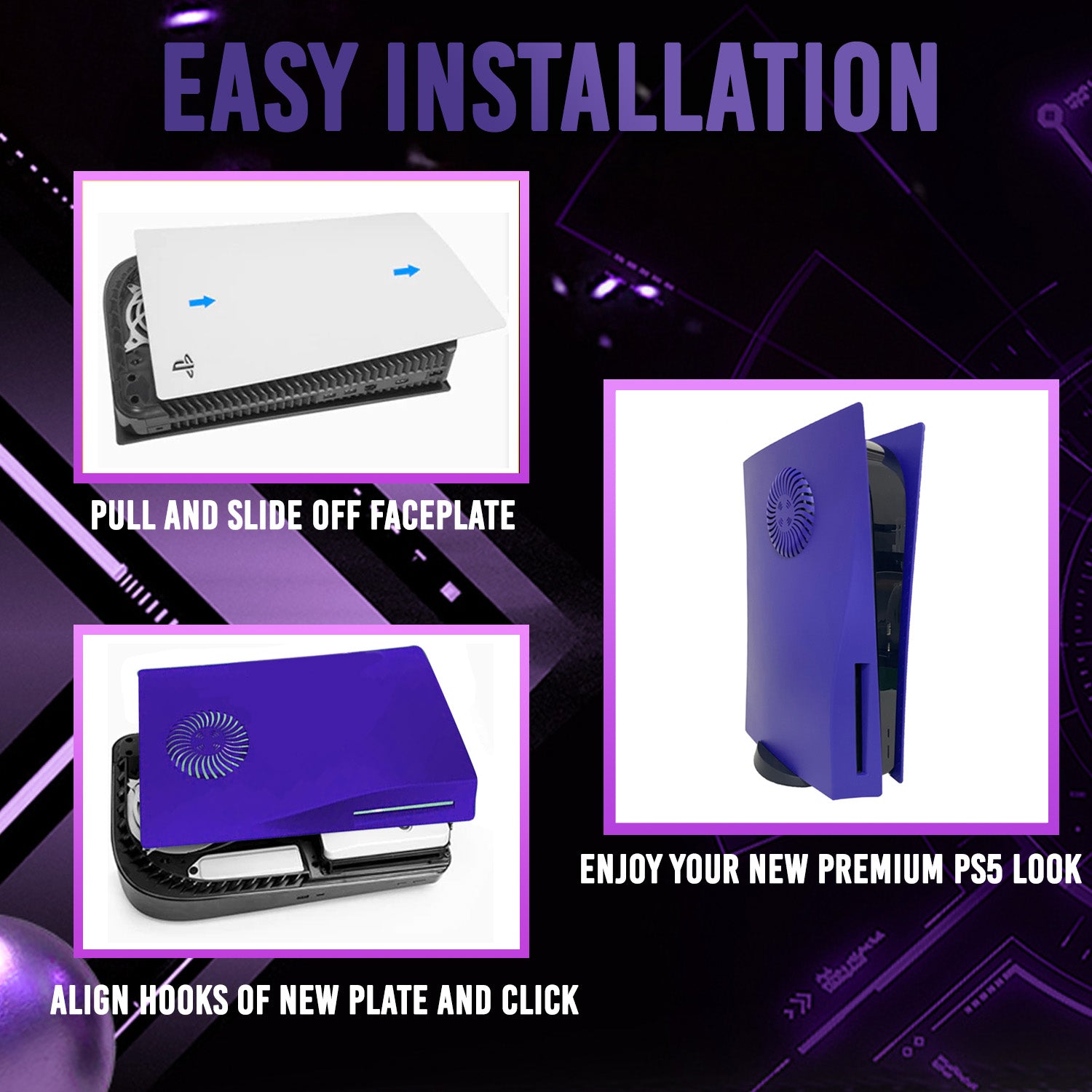 Revitalize your PlayStation 5 Disc Edition with the Galaxy Purple PS5 Faceplate, a design marvel that combines advanced functionality with stunning aesthetics. This faceplate features strategically placed cooling vents to ensure optimal performance during long gaming sessions. The vibrant galaxy purple color adds a unique flair, making your console a standout piece. Easy to install, this faceplate not only enhances your console's durability but also its visual appeal, fitting seamlessly with the PS5's sleek design.