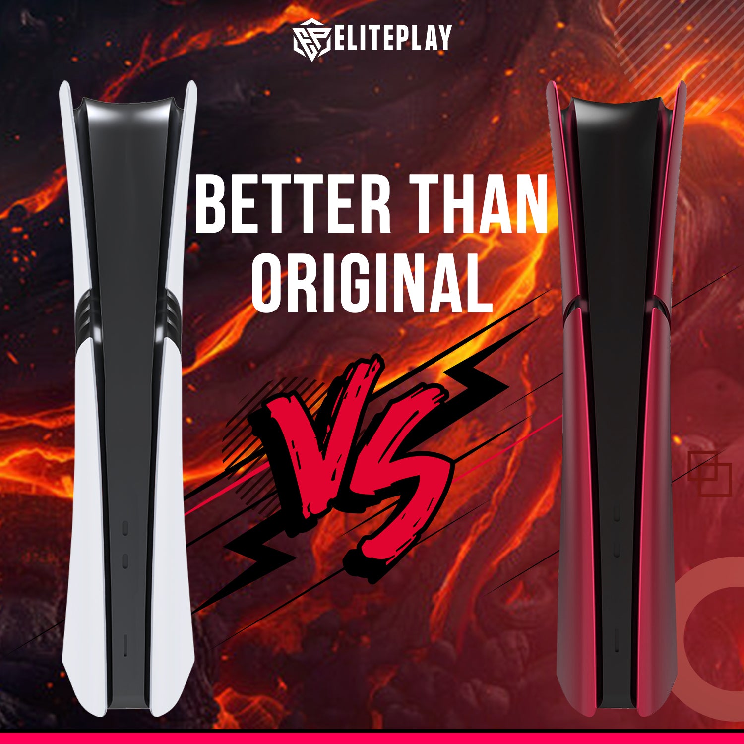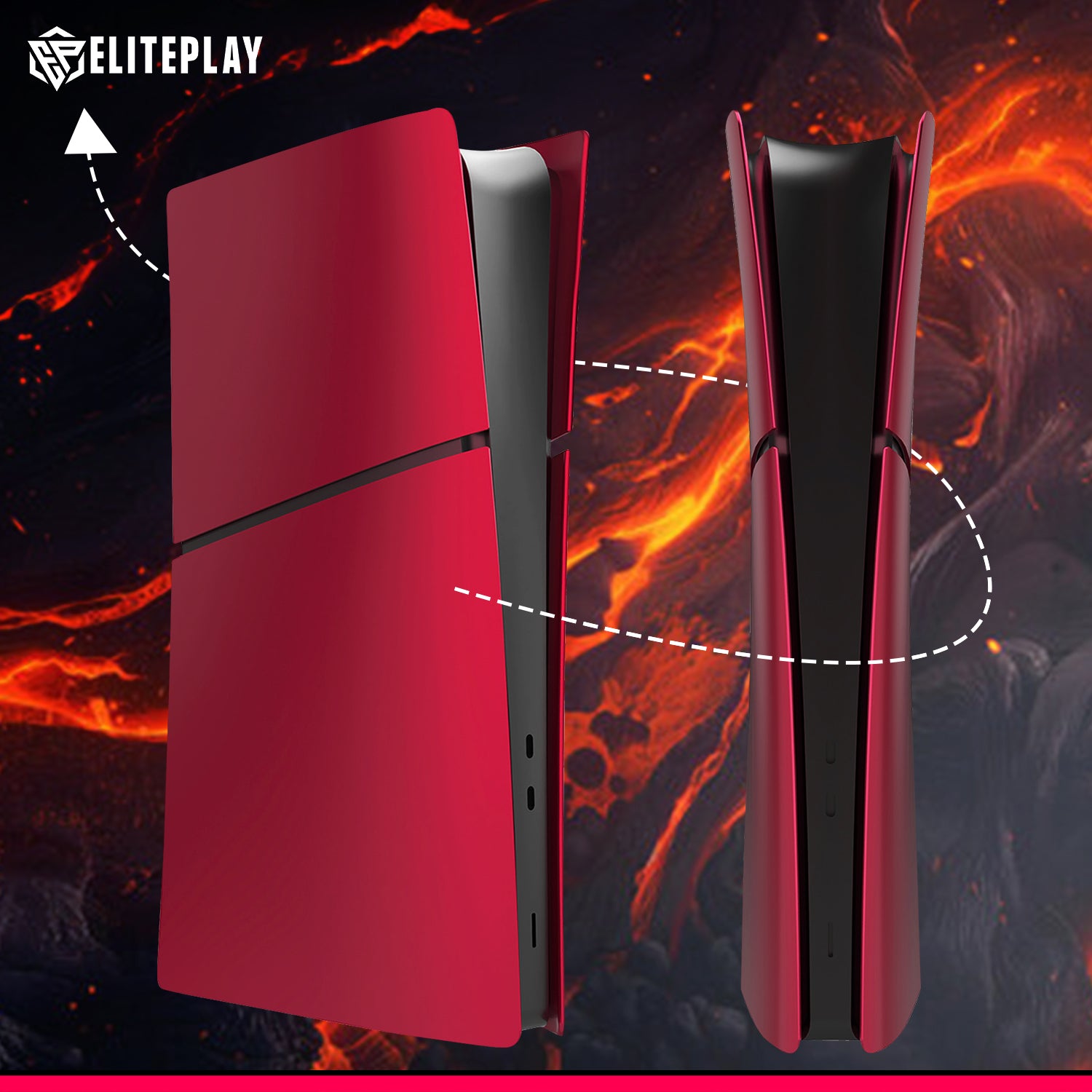 Ignite your gaming passion with the ElitePlay Volcanic Red PS5 Digital Slim Faceplate, designed exclusively for the PlayStation 5 Slim Digital Edition. This striking faceplate not only adds a fiery aesthetic to your console with its vibrant volcanic red color but also features precise engineering to enhance cooling efficiency. It's crafted for a perfect fit, ensuring easy installation and robust protection that keeps your console in top condition. Transform your PS5 Slim with this standout accessory that combines dramatic style with practical performance enhancements.